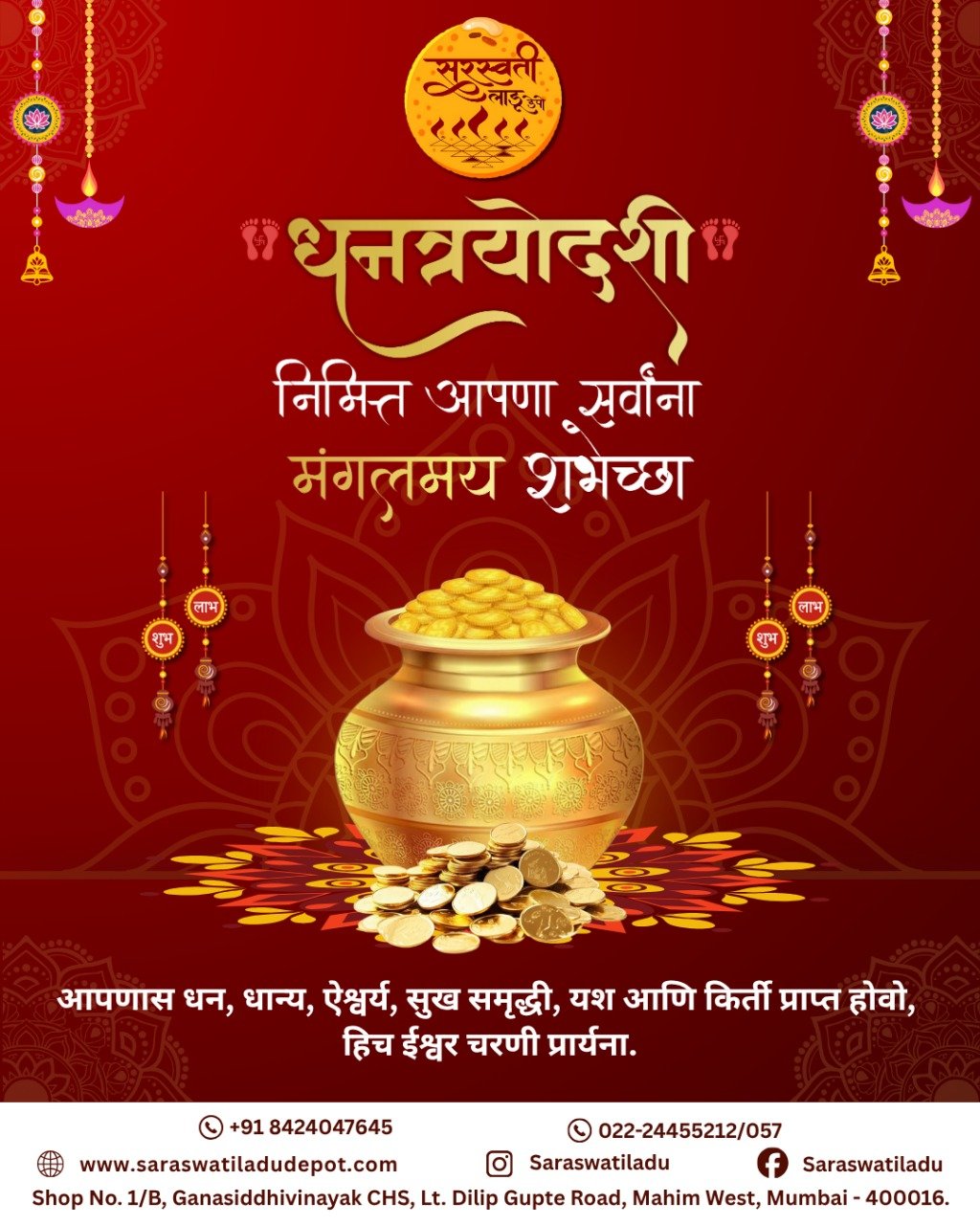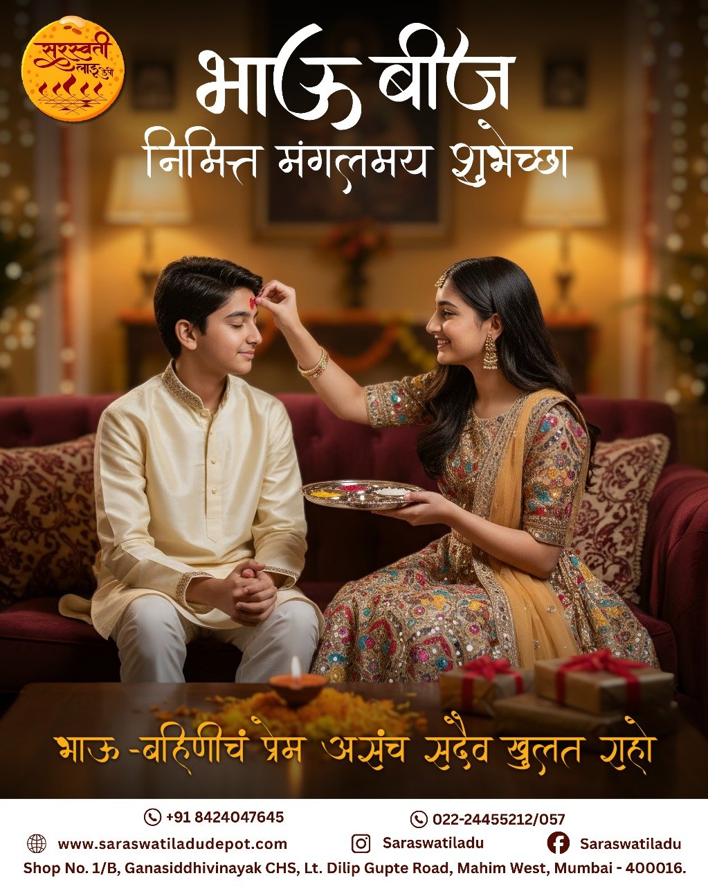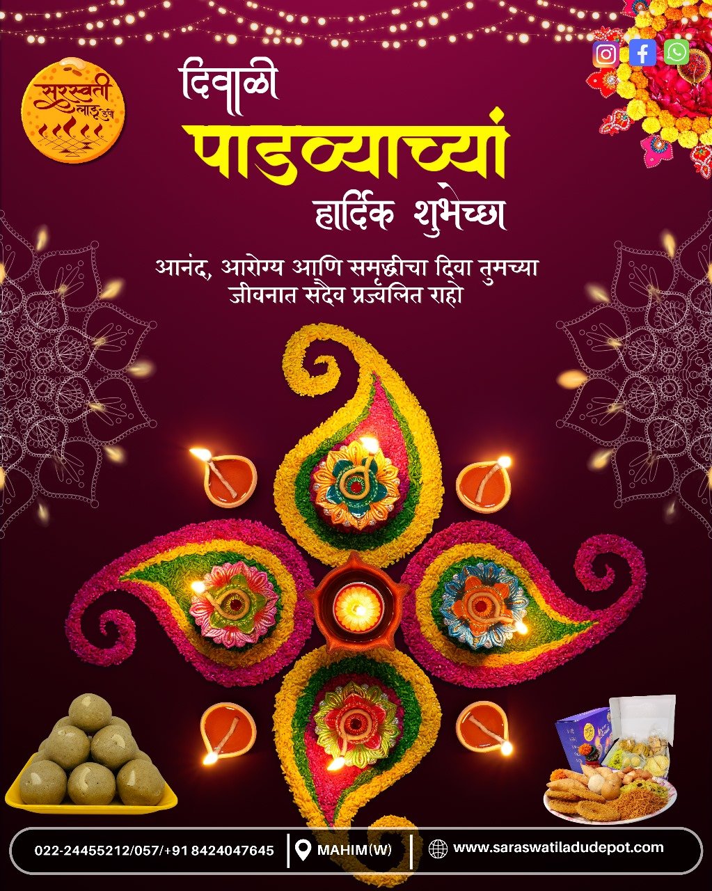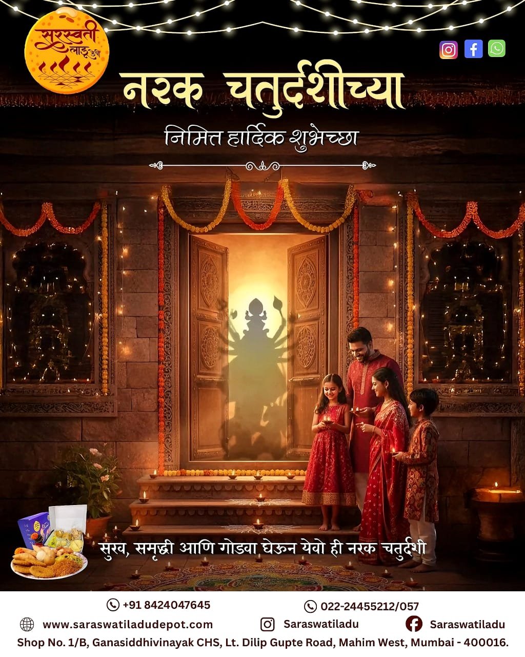 माफक दरात आणि उत्कृष्ट चविचे लाडू व इतर जिन्नस मिळण्याचे माहिममधील एकमेव खात्रीलायक ठिकाण म्हणजे सरस्वती लाडू मार्ट. इथली शुद्धता, दर्जा आणि पारंपरिक चव प्रत्येक वेळी मन जिंकते. एकदा चव घेतली की पुन्हा-पुन्हा मागवावं असं वाटतं! खरंच, इथे चव, परंपरा आणि विश्वास यांचा परिपूर्ण संगम आहे.