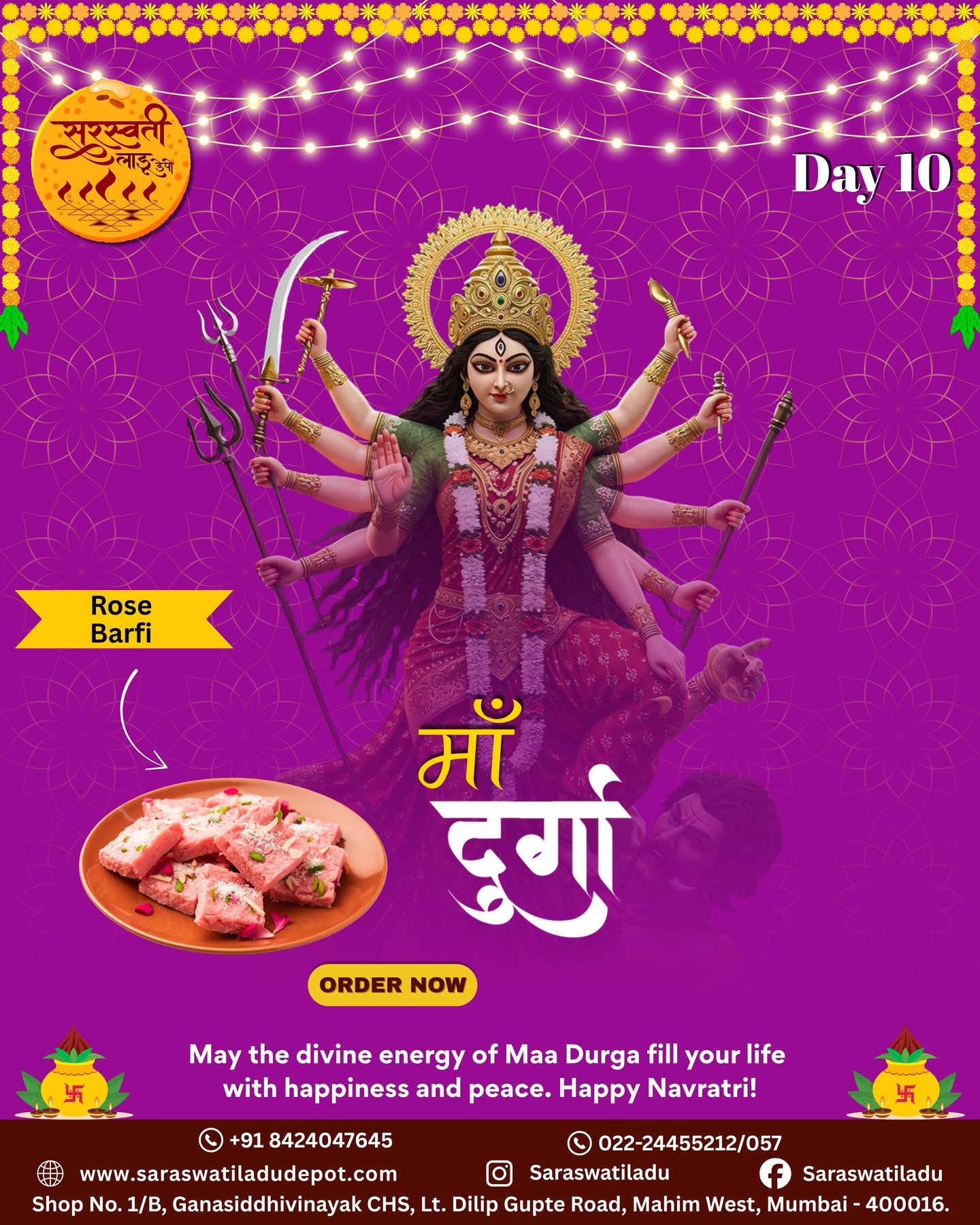 माफक दरात आणि उत्कृष्ट चविचे लाडू व इतर जिन्नस मिळण्याचे माहिममधील एकमेव खात्रीलायक ठिकाण म्हणजे सरस्वती लाडू मार्ट. इथली शुद्धता, दर्जा आणि पारंपरिक चव प्रत्येक वेळी मन जिंकते. एकदा चव घेतली की पुन्हा-पुन्हा मागवावं असं वाटतं! खरंच, इथे चव, परंपरा आणि विश्वास यांचा परिपूर्ण संगम आहे.